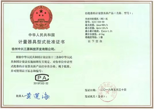 全封閉給煤機(料)系列批準證書(shū)
