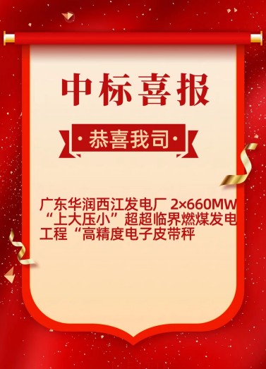 廣東華潤西江發(fā)電廠(chǎng)高精度電子皮帶秤中標喜報 |